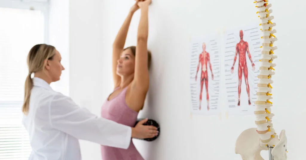 Alongamentos feitos com um fisioterapeuta podem aliviar a tensão nos músculos afetados pela escoliose. Isso inclui alongar os músculos das costas e do peito para melhorar a postura.